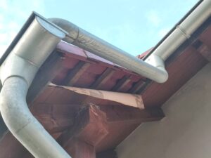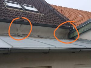 - Šetření na klempířských doplňcích, např. počet svodů, okapových háků, oplechování komína, nepoužívání systémových prvků, chybějící záchytný systém, sněhové zábrany apod.
