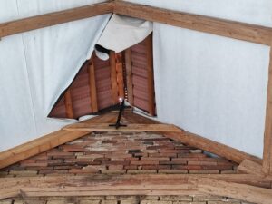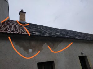 - Morální zastarání střechy, nebo její poškození povětrnostními vlivy, např. chybějící taška, prorezlé prvky, poškozená pojistná izolace vlivem slunečního záření apod.